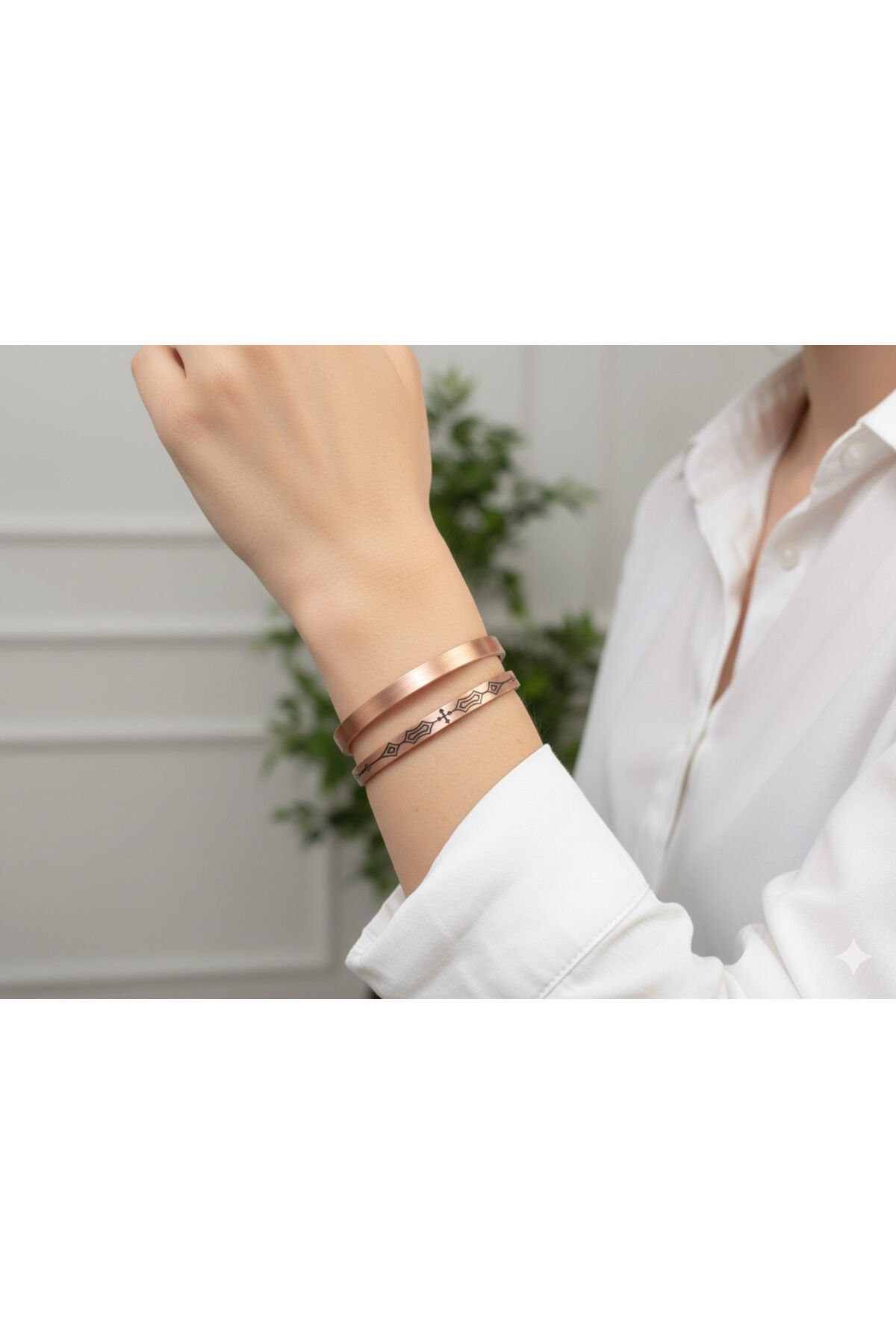 2 ADET 1 ADET SADE VE ŞIK 1 ADET MOTİFLİ Saf Bakır Bileklik Tamamen doğal