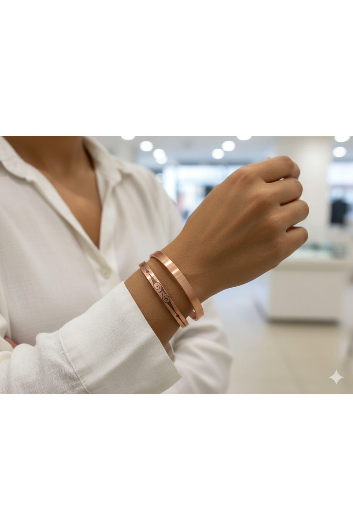 2 ADET 1 ADET SADE VE ŞIK 1 ADET MOTİFLİ Saf Bakır Bileklik Tamamen doğal