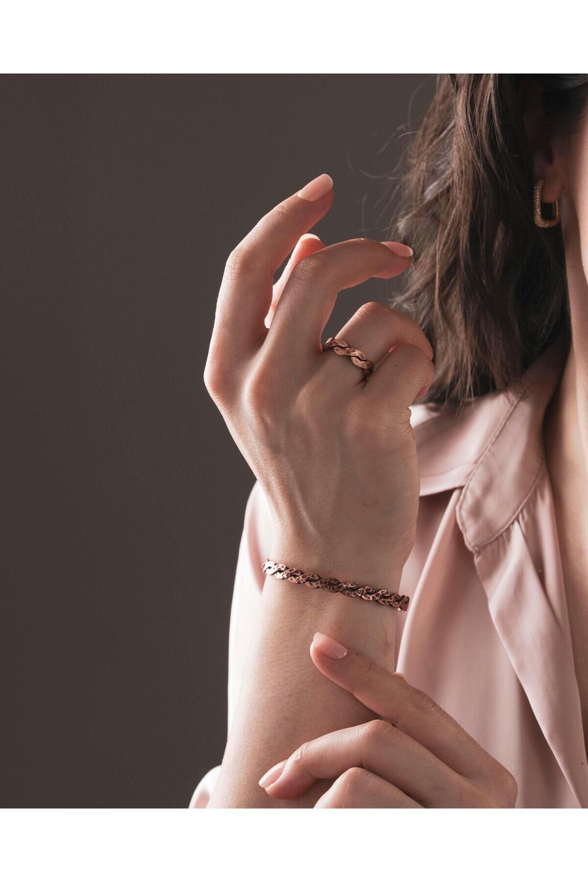 - Eşsiz dövme desenleriyle süslenmiş, göz alıcı bir tasarım sunar.; - Bakır materyali sayesinde hem şık hem de dayanıklı bir kullanım sağlar.; - Burma tarzı tasarımıyla dikkat çeken bir görünüm sunar.; - Hem bilezik hem de yüzük olarak kullanılabilen çok yönlü bir set.; - Her yaş grubuna hitap eden, zamansız bir aksesuar seçeneği.;