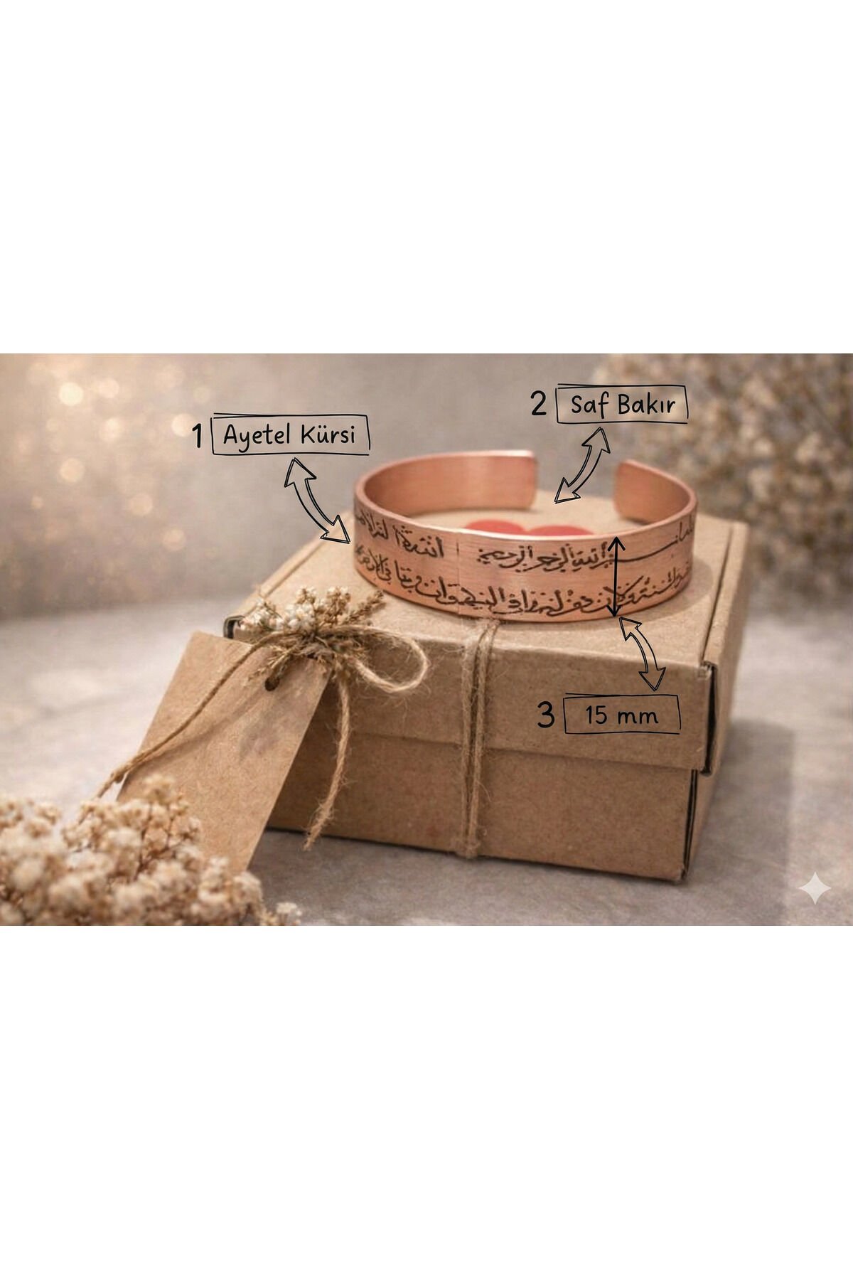 El Yapımı Saf Bakır İşlemeli Premium Bileklik AYETEL KÜRSÜ 2