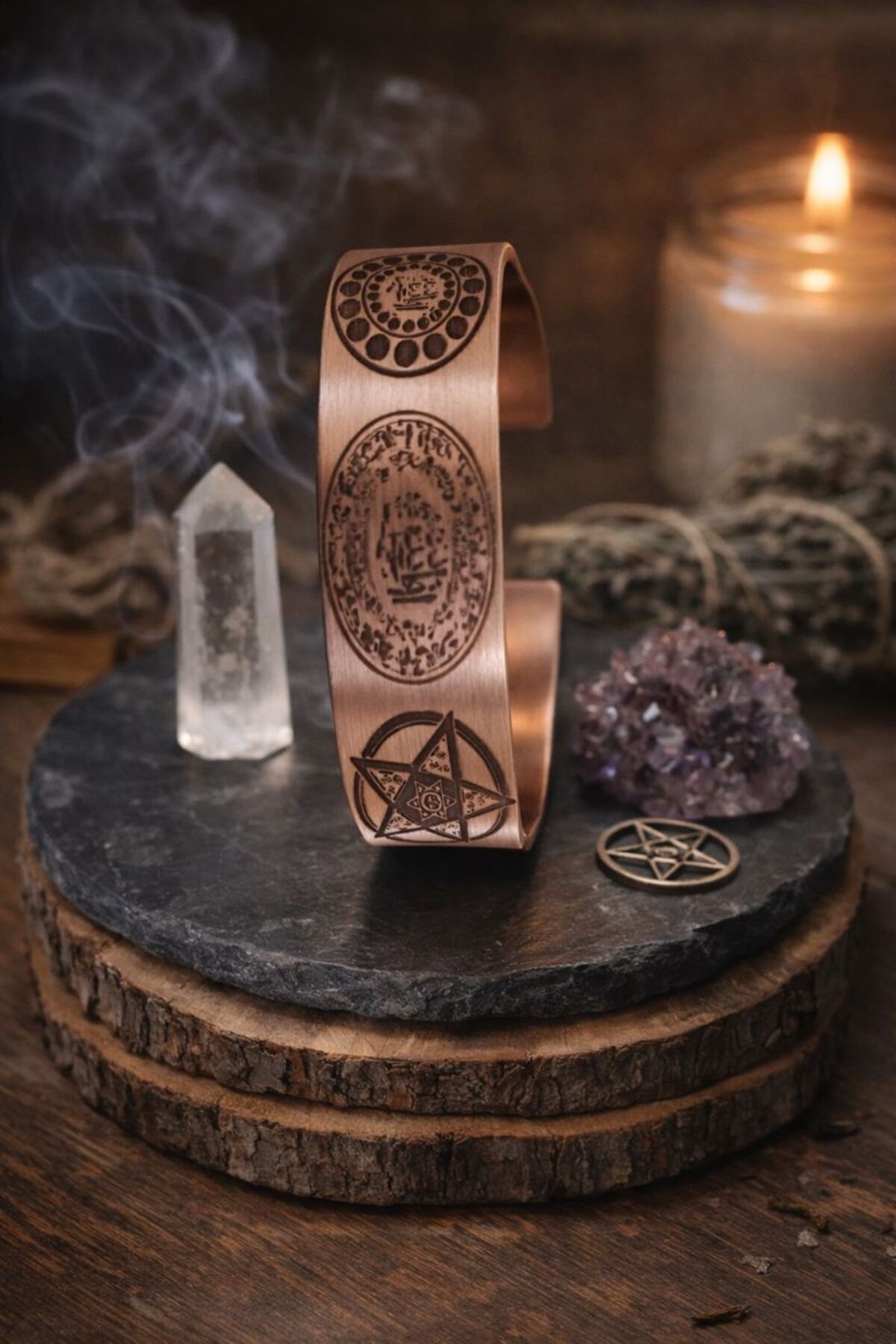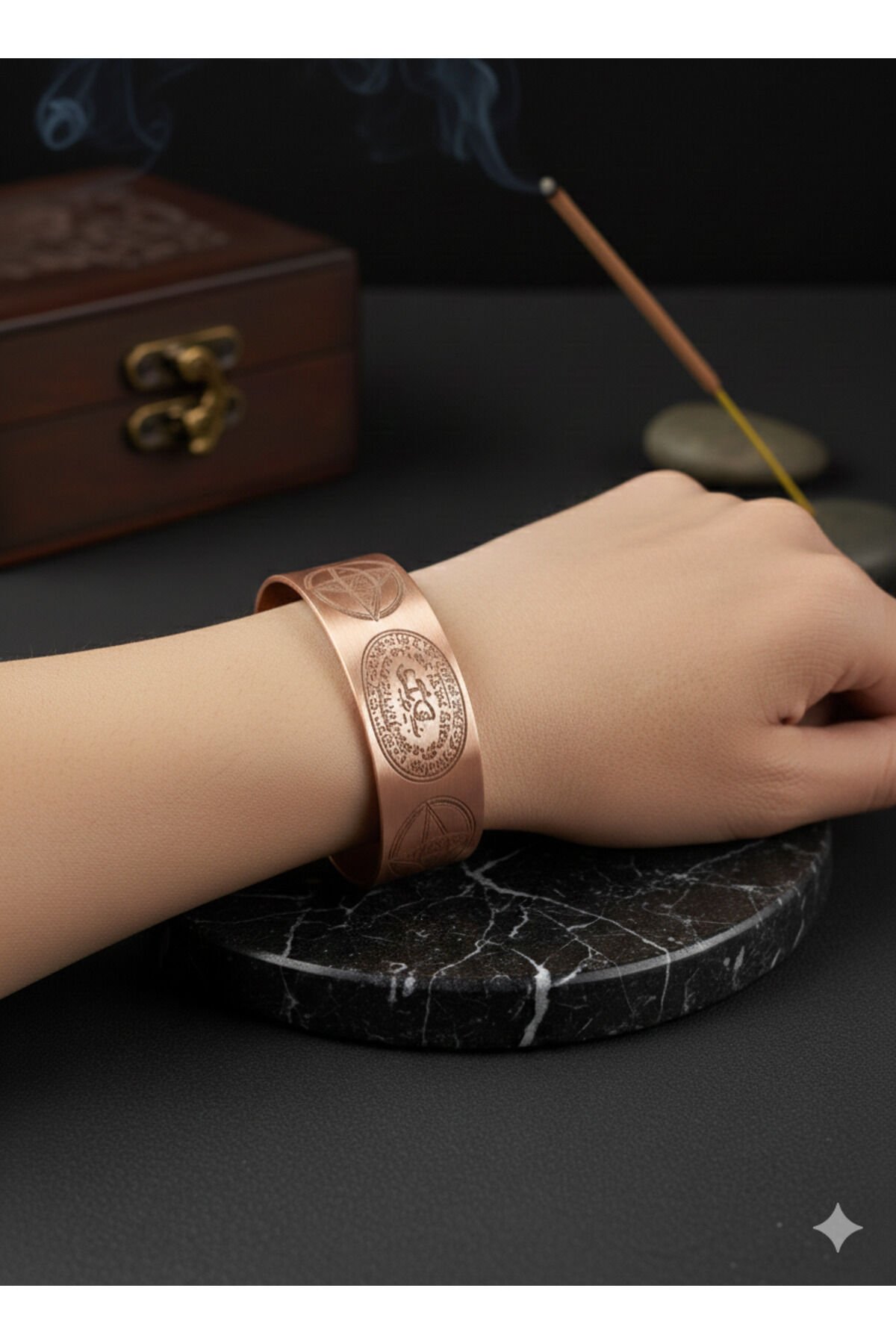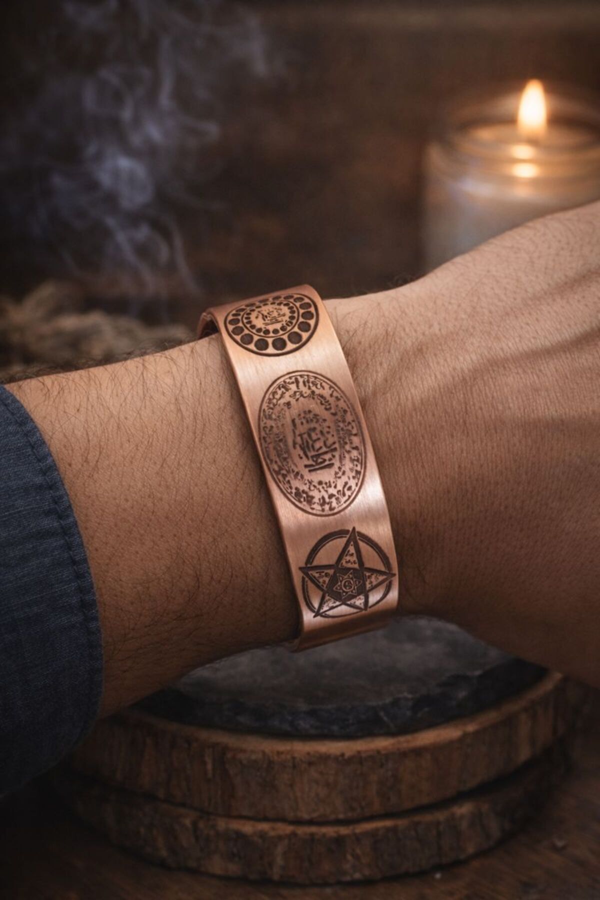 El Yapımı Saf Bakır İşlemeli Premium Bileklik Mühürlü 15 mm geniş Bileklik