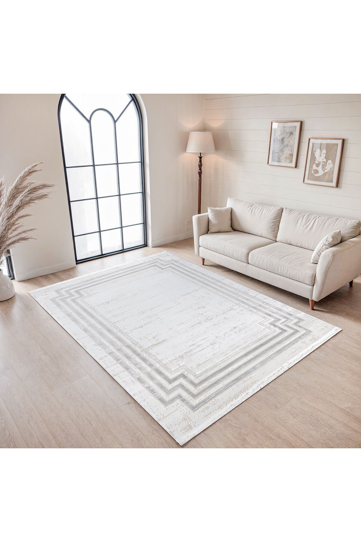 Elina Açık Gri Salon Halısı Pamuk Taban Tozumaz 10 mm Yumuşak Modern