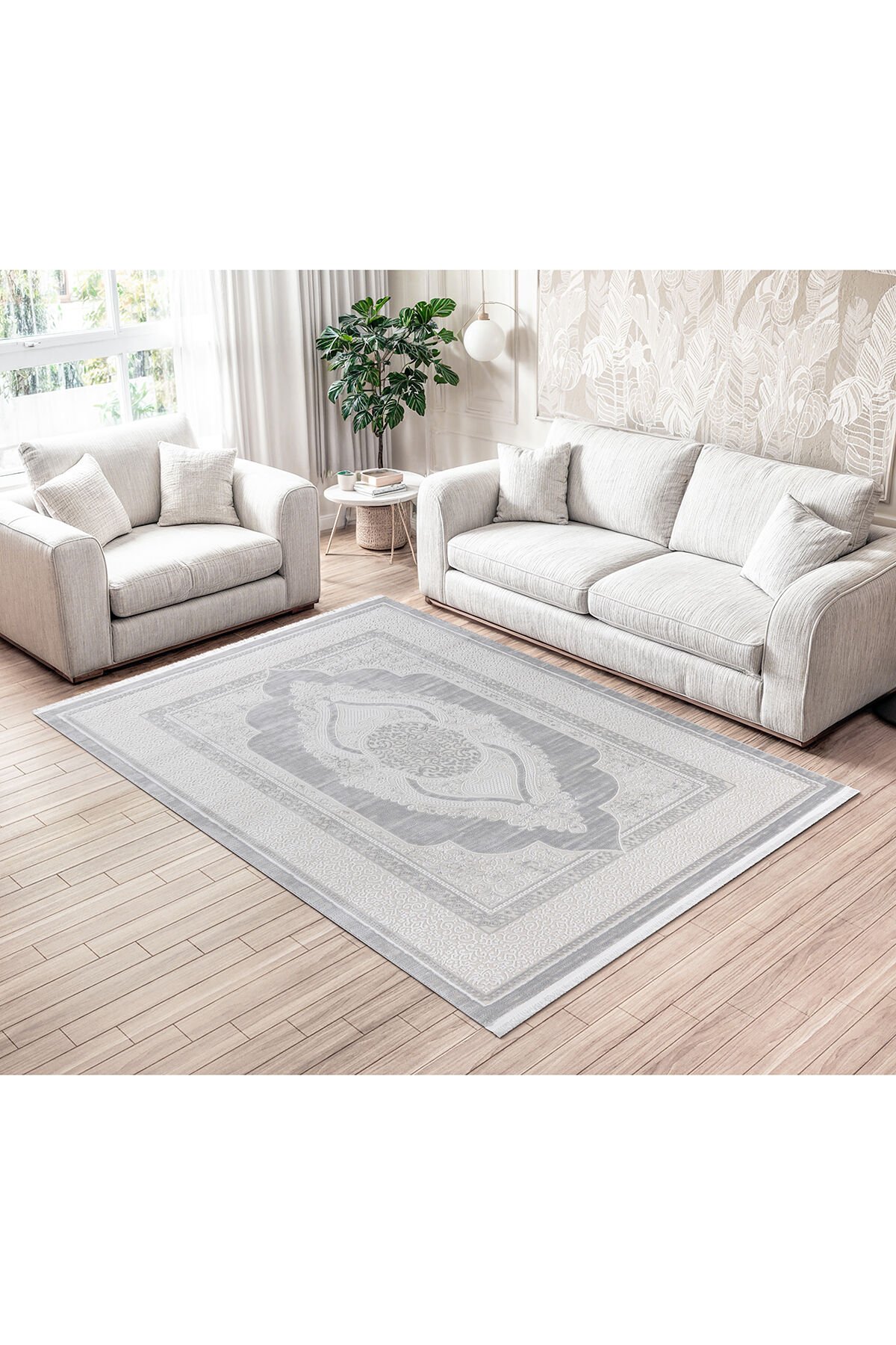 Elina Açık Gri Salon Halısı Pamuk Taban Tozumaz 10 mm Yumuşak Modern