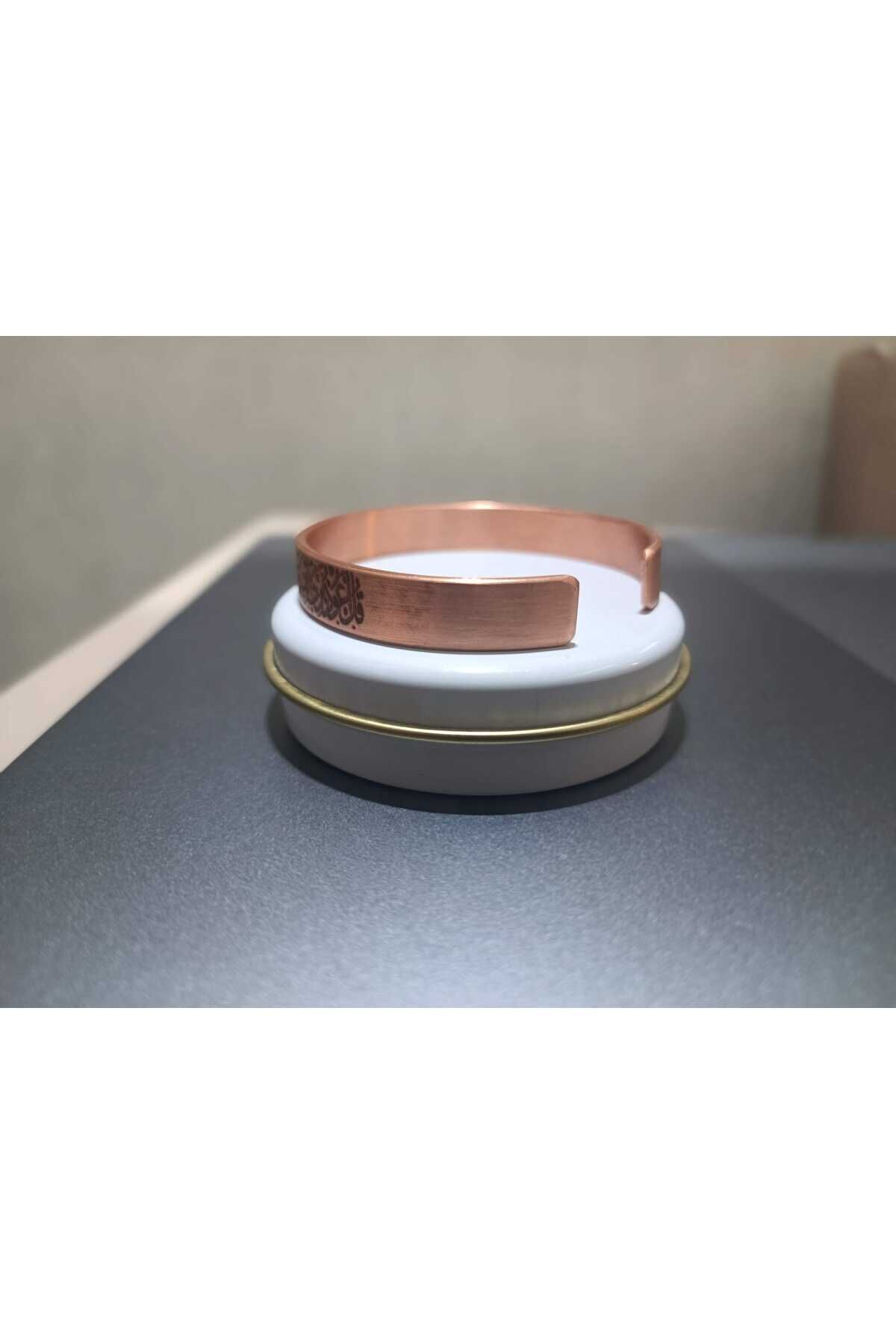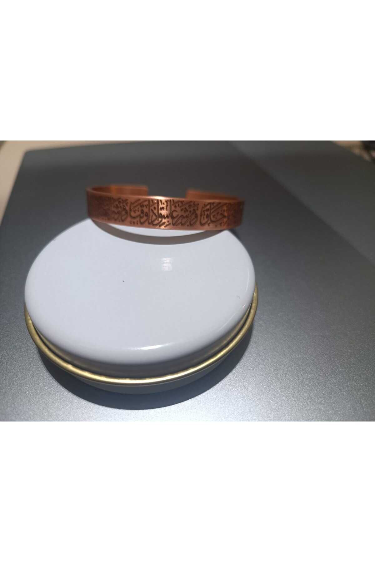ÖZEL METAL KUTU DA Enerji Dengeleyici İşlemeli Saf Bakır Bileklik FELAK SURESİ KALIN BAKIR